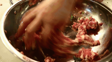 2.取出肉馅加糖,盐等调味并搅拌均匀。