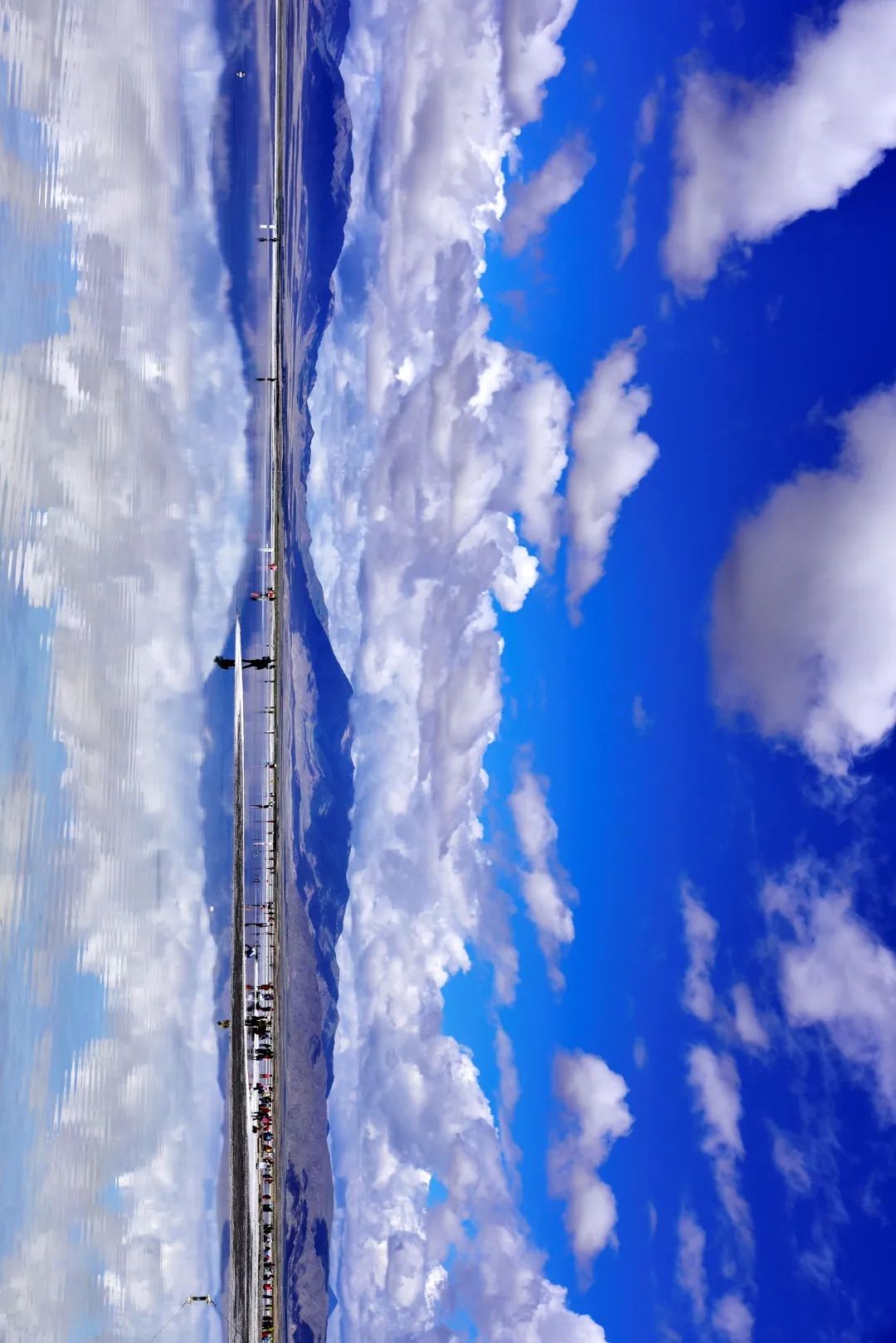 从青海湖西南沿109国道一路向西前行,便来到了许多人一直向往的茶卡盐湖。想象着“半池白云半池玉,碧波晶莹水连天”的壮观景象,心灵和高原的天空一样,立马变得敞亮起来。