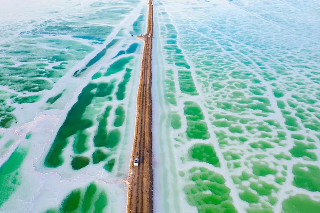 中国是个多盐湖的国家,辽阔的土地上错落着约一千五百个盐湖,仅青海就有一百五十余个,海西州更是集盐湖之大成。再往西便到了另一处令人如痴如醉的地方——翡翠湖。