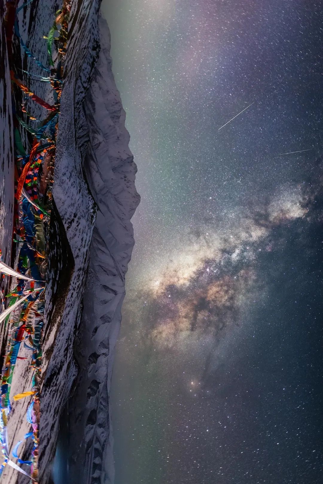 每年在7月20日至8月20日都是观赏英仙座流星雨的最佳时期。到东台吉乃尔湖时,时机恰好赶上,银河渐渐西沉,星星点点划破黑夜,穿越银河,就像坠落的星星,飞向湖面上空。