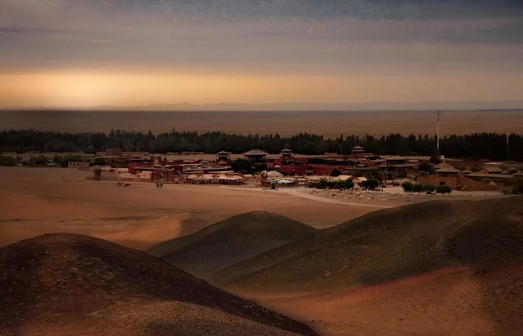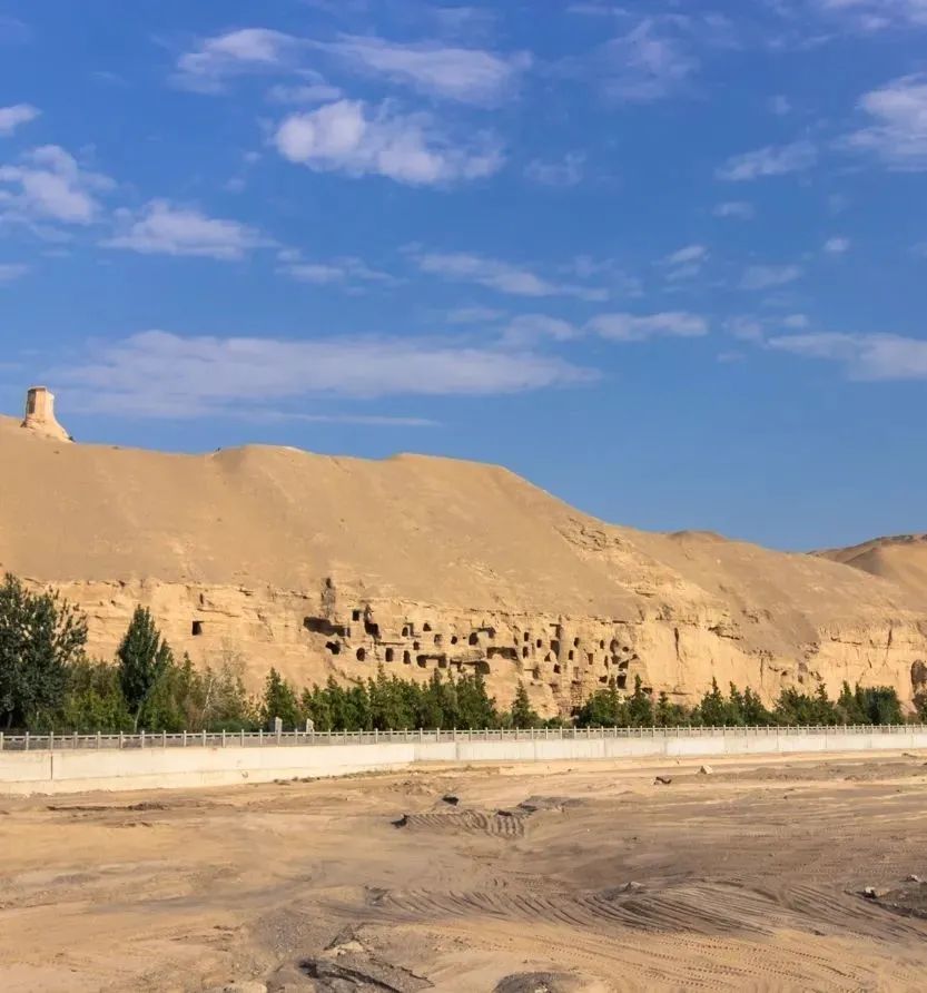 在阳关的东南方向便是著名的敦煌莫高窟,河西走廊上,通往西域的丝绸之路有北、中、南三条线路。这三条线路都以敦煌为起点到达中亚、欧洲,东来西去的商人都要在敦煌驻足停留,从而确立了其国际商贸城市的地位,被誉为“华戎所交,一都会也”。