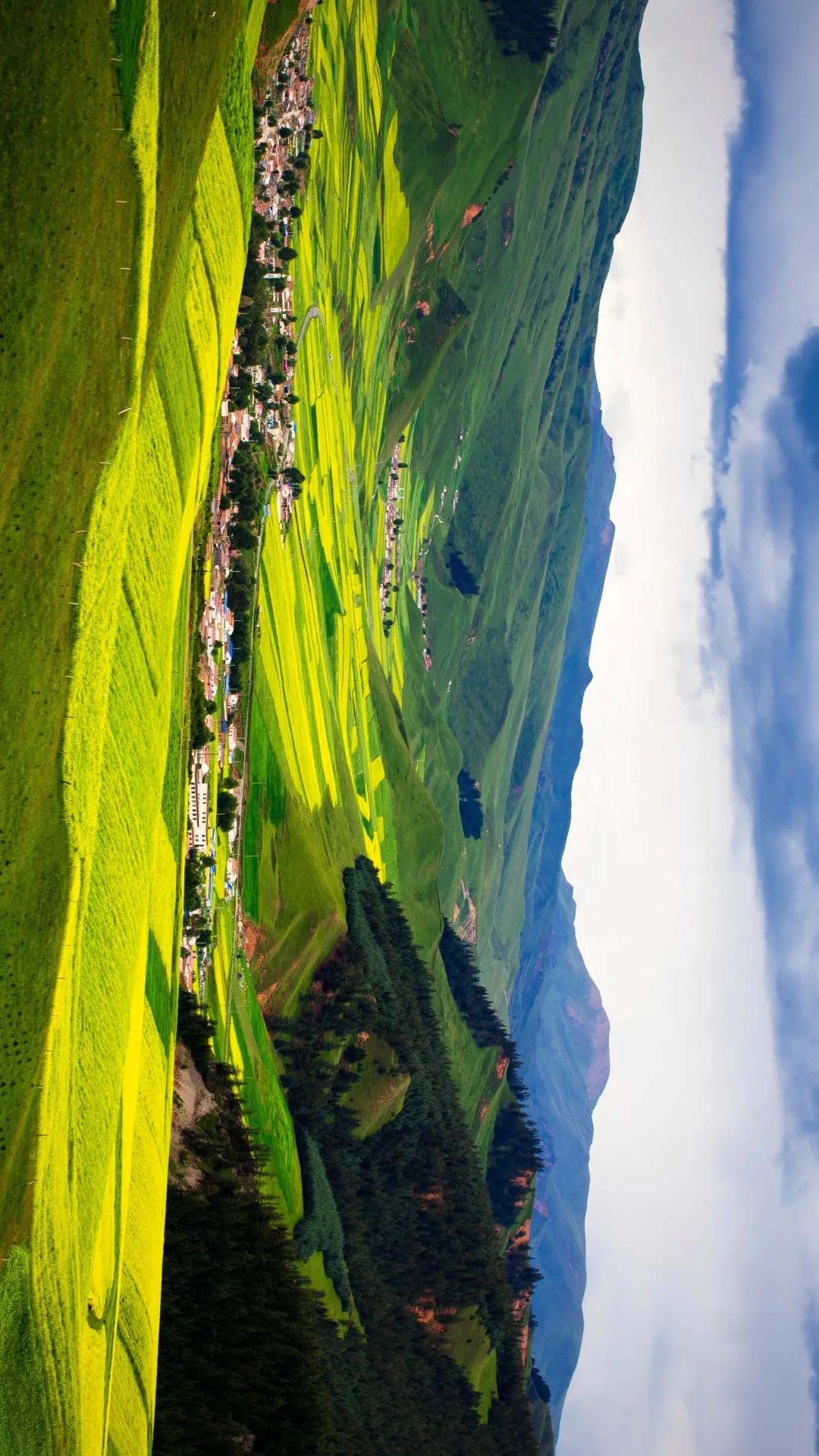 看过雪山后,紧接着便是门源花海,沿着227国道争相绽放。盛夏时节,这里的油菜花铺展出“金色花海”,天地间融为一幅浓墨重彩的天然画卷。漫天的花海一眼望不到尽头,置身其中,仿佛进入一个浪漫的童话世界。