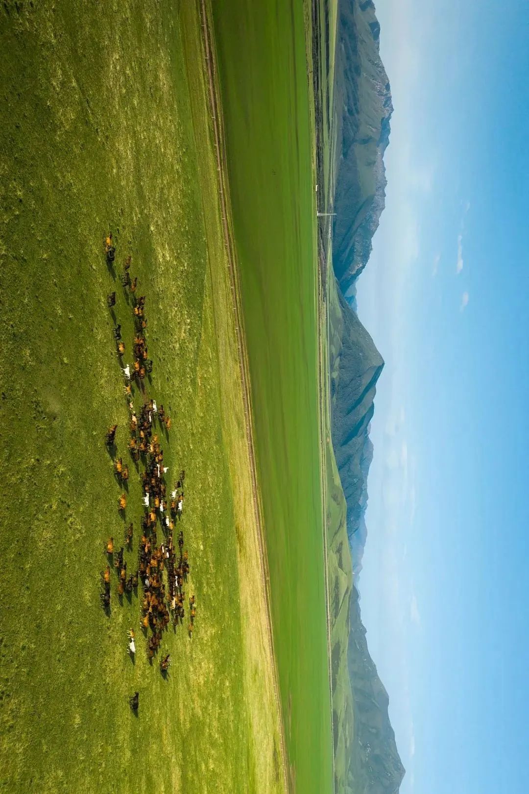 祁连山雪山的融水滋润了河西四郡乃至整个河西走廊的万物,有了水的滋润,绿色自然就会萌芽,在海拔较低的地方,草占据了主导。