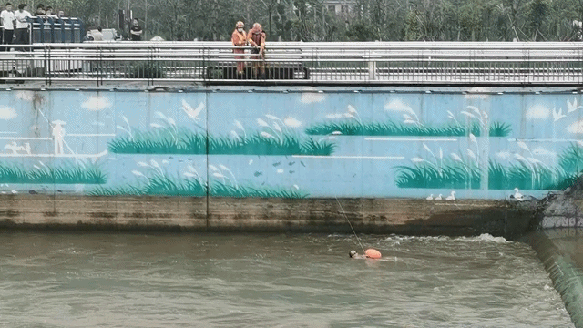 待男子转移至水流平稳区域
