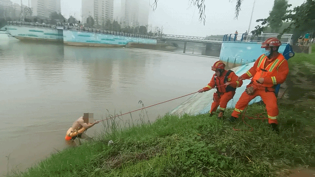 消防救援人员合力将男子拉上岸