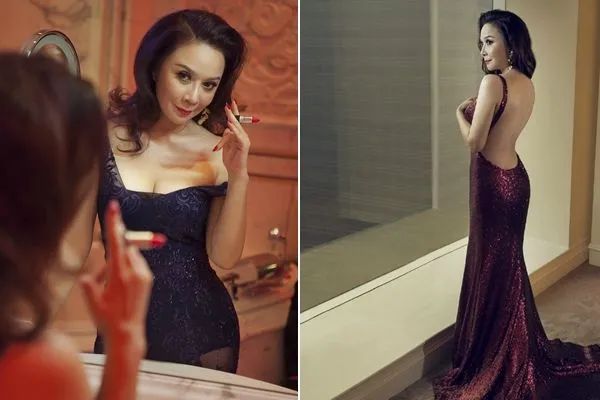 照片中的她烈焰红唇,妖娆性感,身材完美、皮肤细腻。