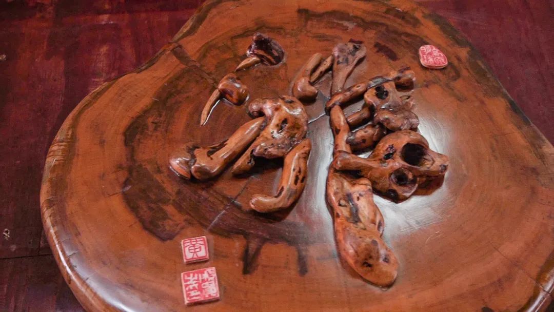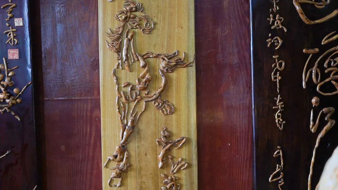 “以前我父亲喜欢种盆景,我经常跟着他学习打理,就喜欢上各种枝丫藤条。”黄顺贵介绍,他自小喜欢书法绘画,在对根艺产生浓厚的兴趣之后,他产生了将树根创作为书法和绘画的想法。