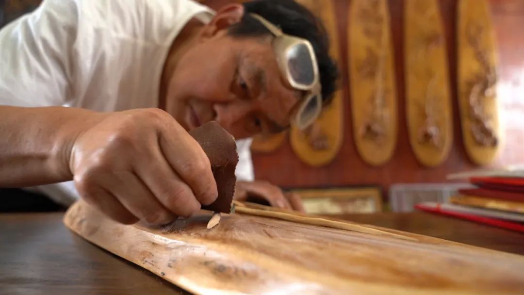 “我现在有两个徒弟,但是我觉得还不够,我希望有更多的人来找我学习。”在黄顺贵看来,根书根画这门技艺要想得到传承和发展,需要更多的人不断研习。对于前来学习的人,他会免费教学。此外,黄顺贵不时还会在短视频平台直播,介绍他的根书根画作品及创作过程,让更多人了解他的根书根画。