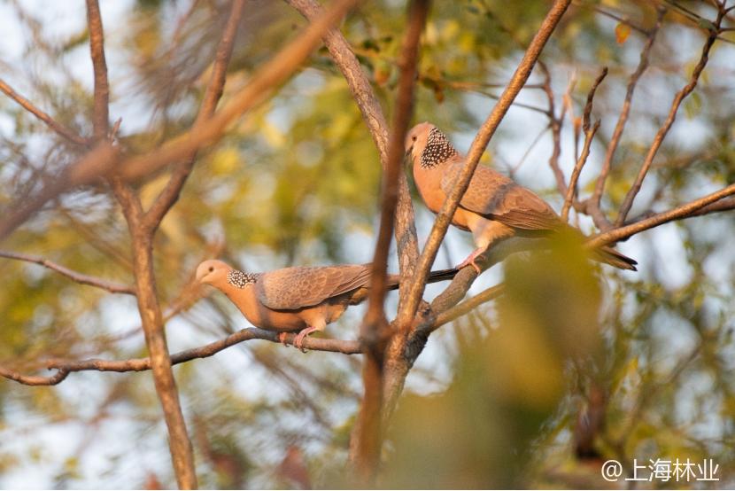 正在求偶的珠颈斑鸠(摄影:@郑运祥)