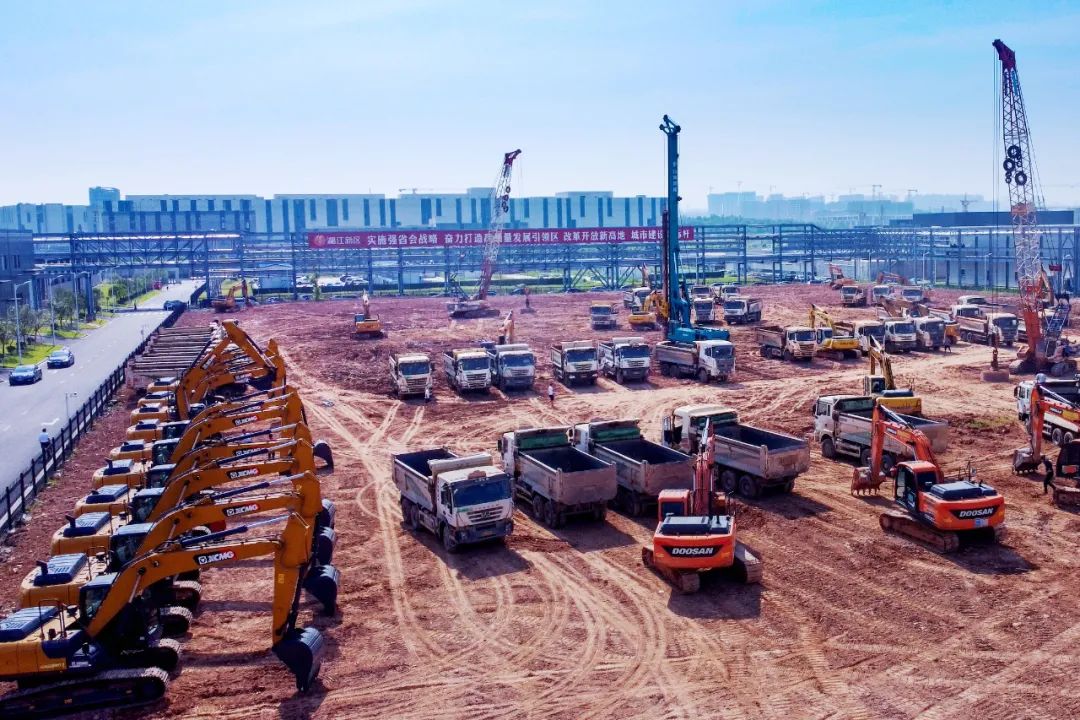 7月14日,湘江新区全域145个重大项目集中开竣工,其中湖南三安半导体项目二期工程迎来正式开工。