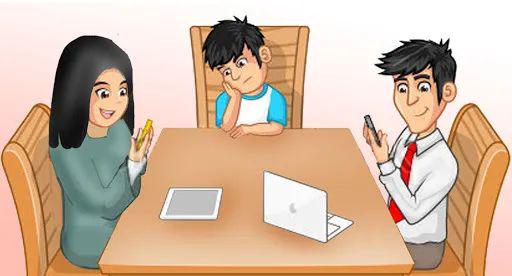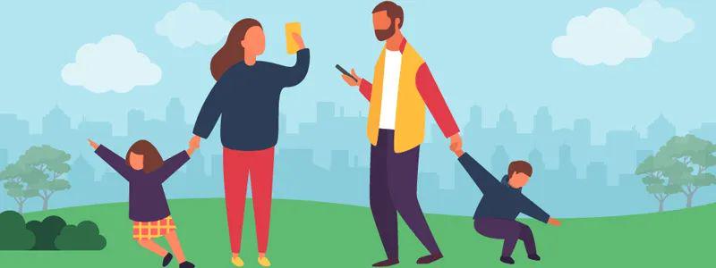 然而,在过去的几年里,父母和孩子之间的沟通受到了移动媒体大规模渗透的影响。父母和孩子都变成了低头族(Phubbing),专注于电子设备而忽略他们的互动伙伴。因此,在各种公共场所,父母和孩子虽然在一起消磨时间,但父母很可能关注的是手机,而不是孩子。有研究者称这种现象为"气泡"(bubble),也就是说,人们通过使用手机,强化了自己与周围环境之间的疏离感。