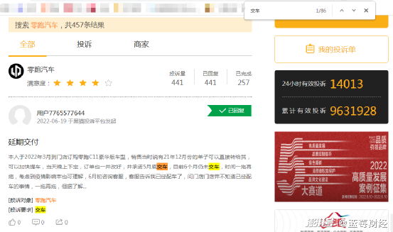 同时,全域自研为零跑带来了一定的疫时供应优势,而在常态下,零跑汽车的供应能力并不强。从黑猫投诉以及各汽车论坛等平台上获取的信息来看,零跑汽车交付时间经常延期。