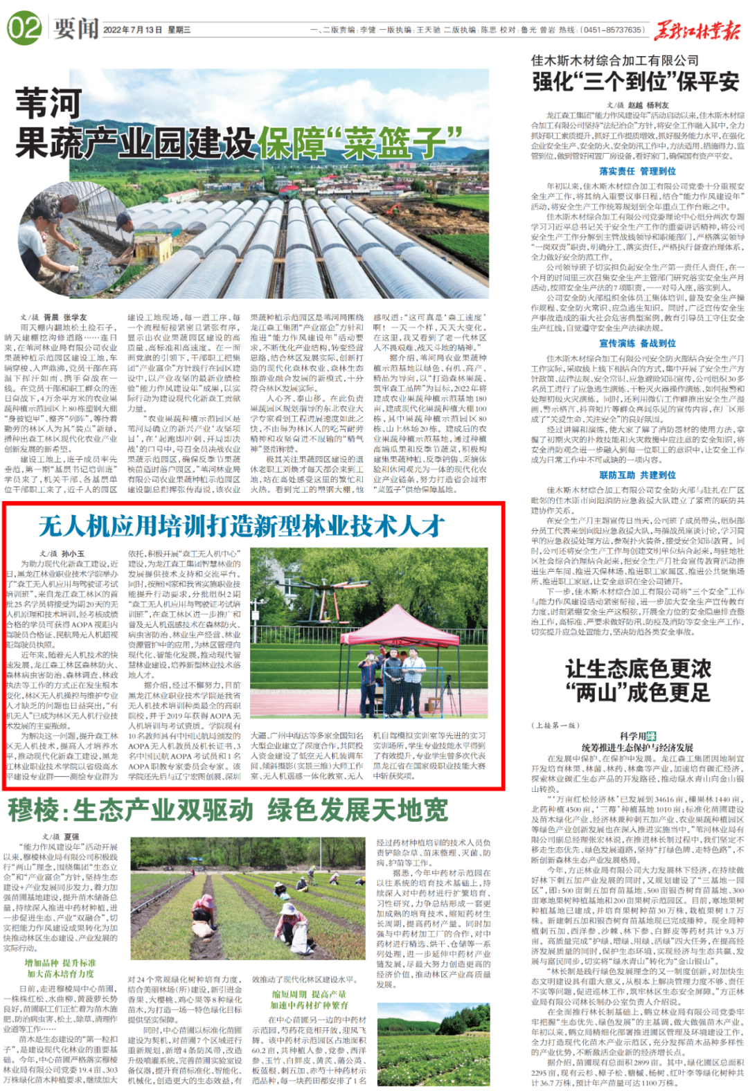 为解决这一问题,提升森工林区无人机技术,提高人才培养水平,推动现代化新森工建设,黑龙江林业职业技术学院以省级高水平建设专业群——测绘专业群为依托,积极开展“森工无人机中心”建设,为龙江森工集团智慧林业的发展提供技术支持和交流平台。同时,按照国家和我省实施职业技能提升行动要求,分批组织2期“森工无人机应用与驾驶证考试培训班”,在森工林区进一步推广和普及无人机遥感技术在森林防火、病虫害防治、林业生产经营、林业资源管护中的应用,为林区管理向现代化、智能化发展,推动现代智慧林业建设,培养新型林业技术落地人才。