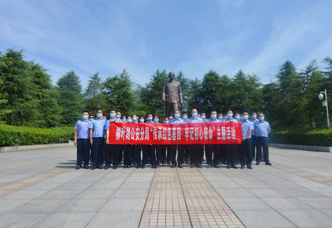 在林伯渠铜像广场,大家怀着缅怀之情与敬仰之心瞻仰林伯渠同志铜像,并在分局党组副书记、政委丁卫东的带领下重温入党誓词,全体党员民辅警面向党旗,紧握右拳,庄严宣誓。一声声铿锵有力的誓言在广场上回响,展示了大家坚守初心,牢记使命的庄严承诺。
