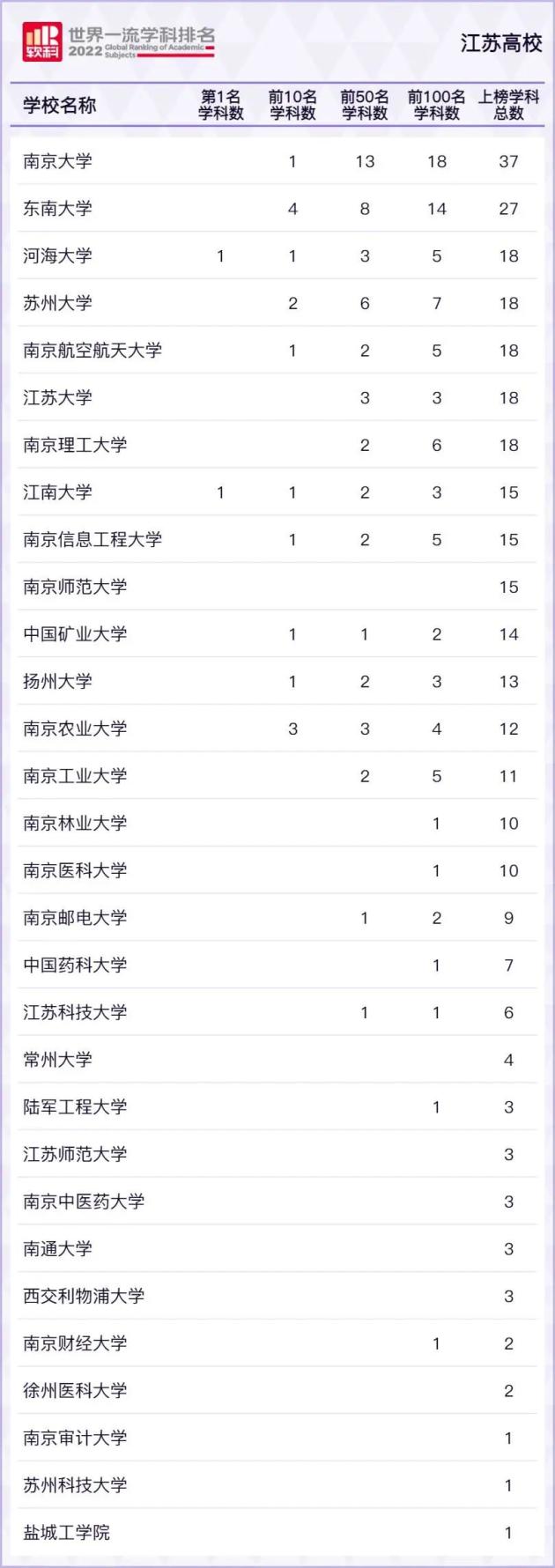 原标题:《2022软科世界一流学科排名发布,江苏30所高校317个学科上榜》