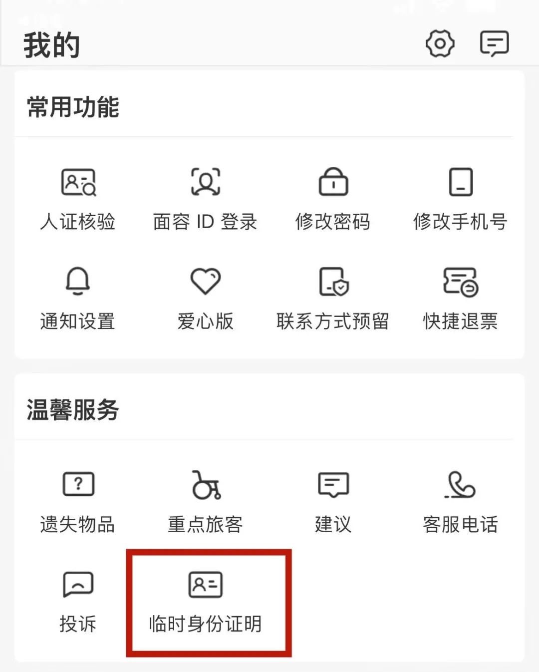 可查看电子临时乘车身份证明的
