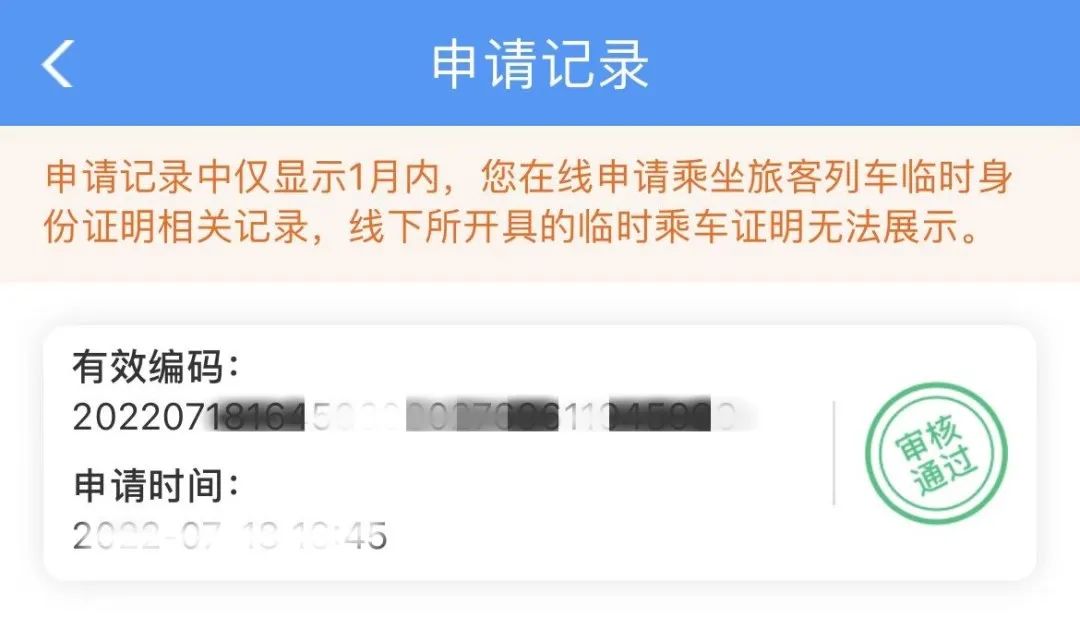 电子临时乘车身份证明的相关记录