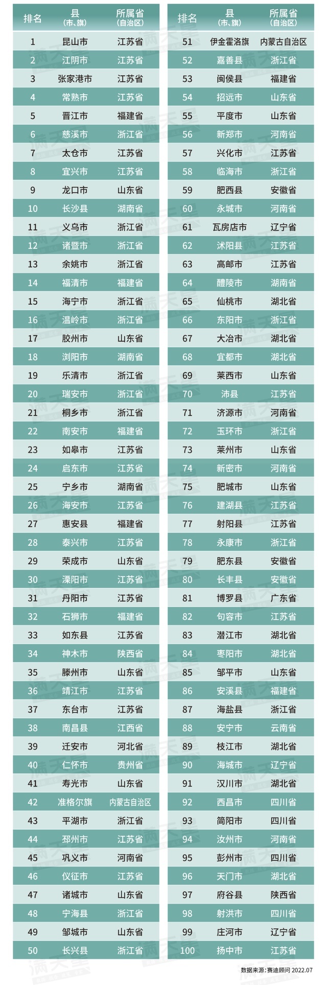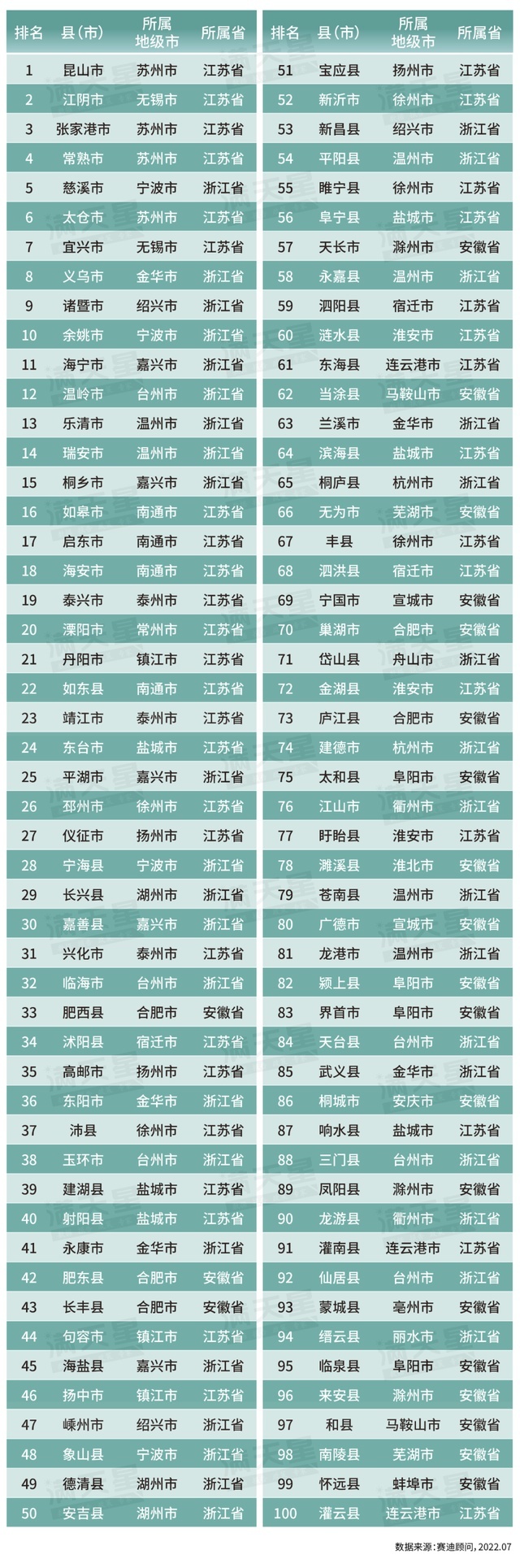 7月20日,2022年赛迪长三角百强县榜单发布。