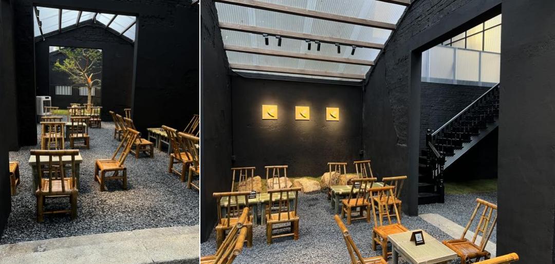 老侨屋内的新咖啡店,融合老屋怀旧元素加入了竹桌、竹椅等中式元素