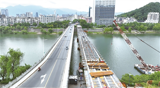 “截至目前,已完成所有主梁架设工作。”滕剑锋表示,下一步,项目部将继续开展横梁、端梁、Y梁等桥梁铺设和焊接工作,预计将在7月底完成,8月将进行后续钢筋混凝土浇筑等作业。届时一座崭新的桐庐大桥将展现在市民面前。