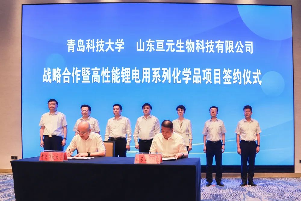 7月21日,青岛科技大学与山东亘元生物科技有限公司战略合作暨高性能锂电用系列化学品项目签约仪式在威海市举行。校企双方共签订7.7亿元合作项目,是目前山东省单笔最高金额的校企合作项目。山东省科技厅党组书记、厅长唐波,山东省教育厅总督学仲红波,威海市委副书记、代市长孔凡萍,青岛科技大学党委书记李兴伟、校长陈克正等出席签约仪式。