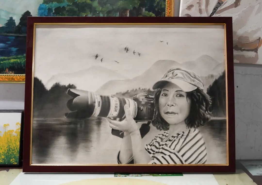 徐冰雪喜欢创新,她将炭精画与其他画技相结合,无论什么题材的画她都可以用炭精画来展现。