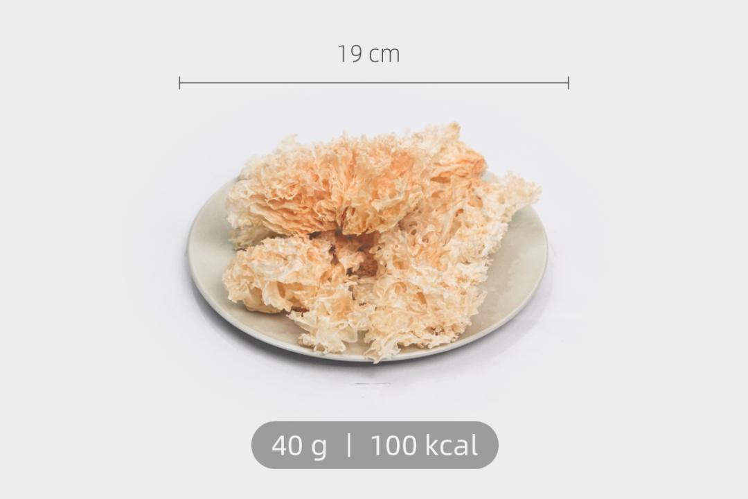 银耳的热量和差不多,每百克的热量是261kcal,100大卡的银耳能吃40g。