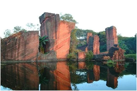 这里是东莞唯一的红砂岩古采石场遗址。塘尾古村中用以筑房铺路的红砂岩,便来自此处。