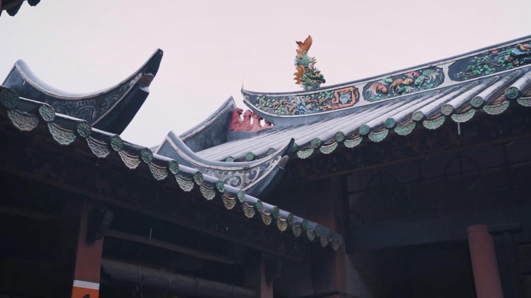 雨水中的李氏宗祠,也被染上了一层深沉的滤镜。