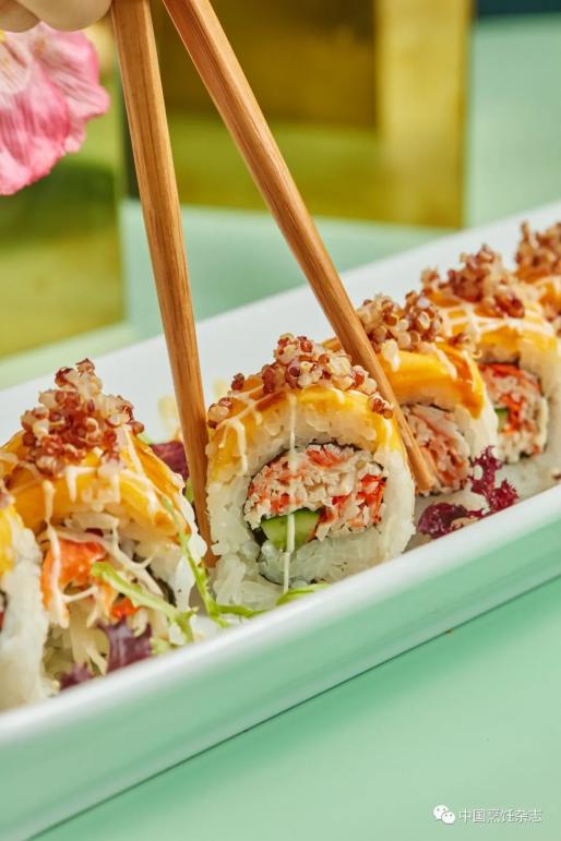 这是选用时令水果及谷物打造的轻食寿司,突显低脂肪、低热量的特点。