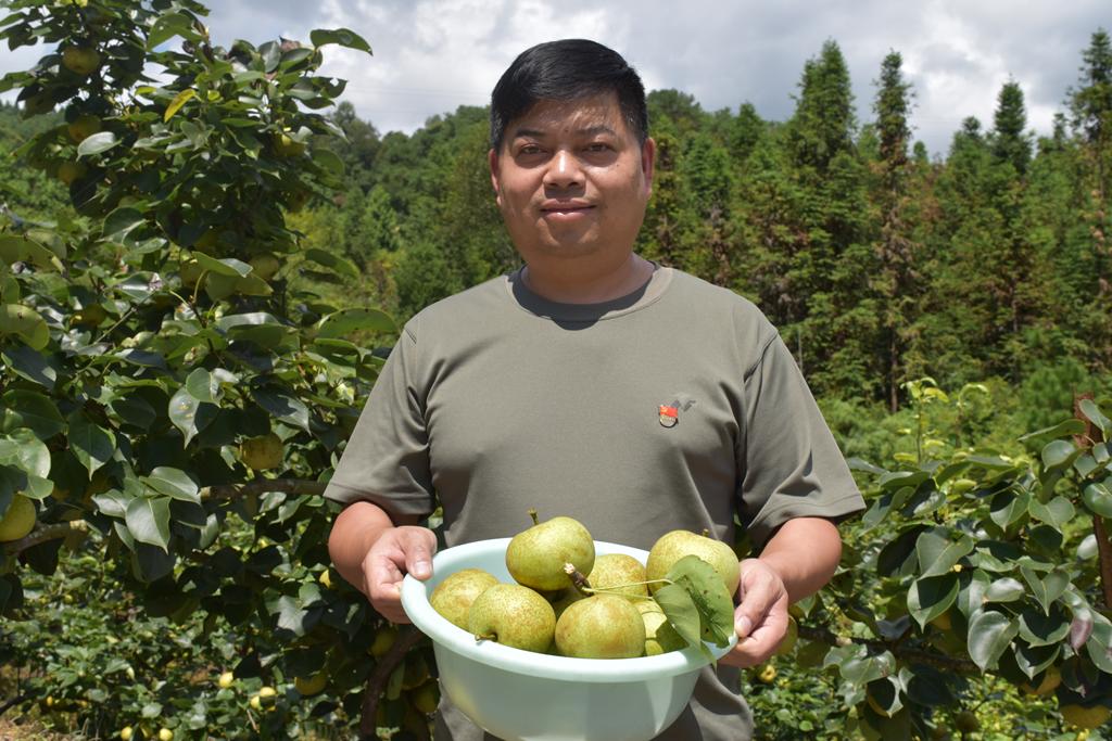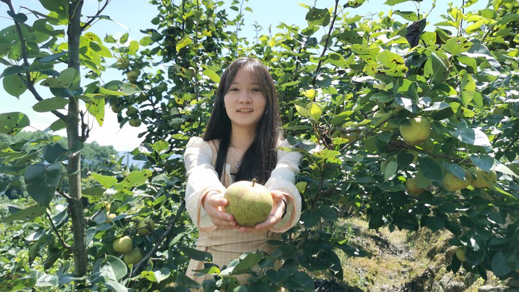 据五合丰水梨种植大户常丽明介绍,“丰水梨是从外地引进的优良品种,皮黄肉白、细嫩化渣、汁多核小、味道浓甜,游客戏称‘梨汁炸弹’。刚过6月,熟客就迫不及待地问我成熟了没,非常受欢迎。”