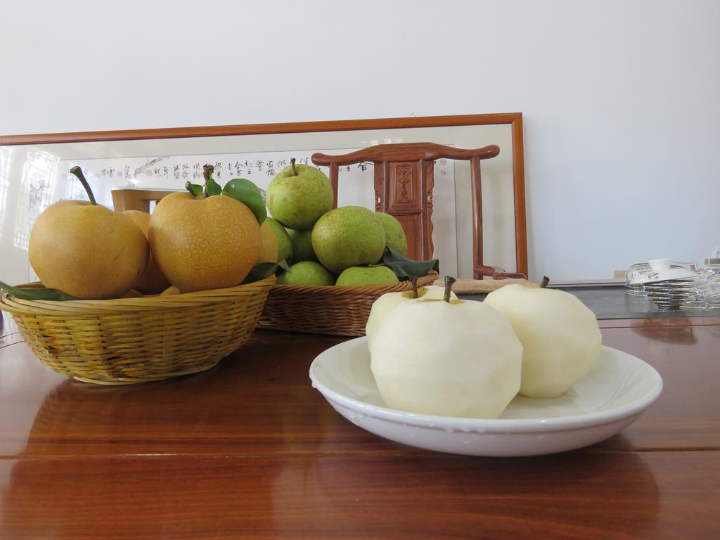“我们家种植了40多亩的夏雪梨和大黄梨,目前夏雪梨正处于成熟期,采摘期将持续到下个月中旬,大黄梨在9月上市,可摘至中秋节前后。今年雨水充足,产量剧增,硕果压枝,等待采撷,价格还是每市斤4元。”志哥庄园负责人郭大志强烈推荐今年的夏雪梨。