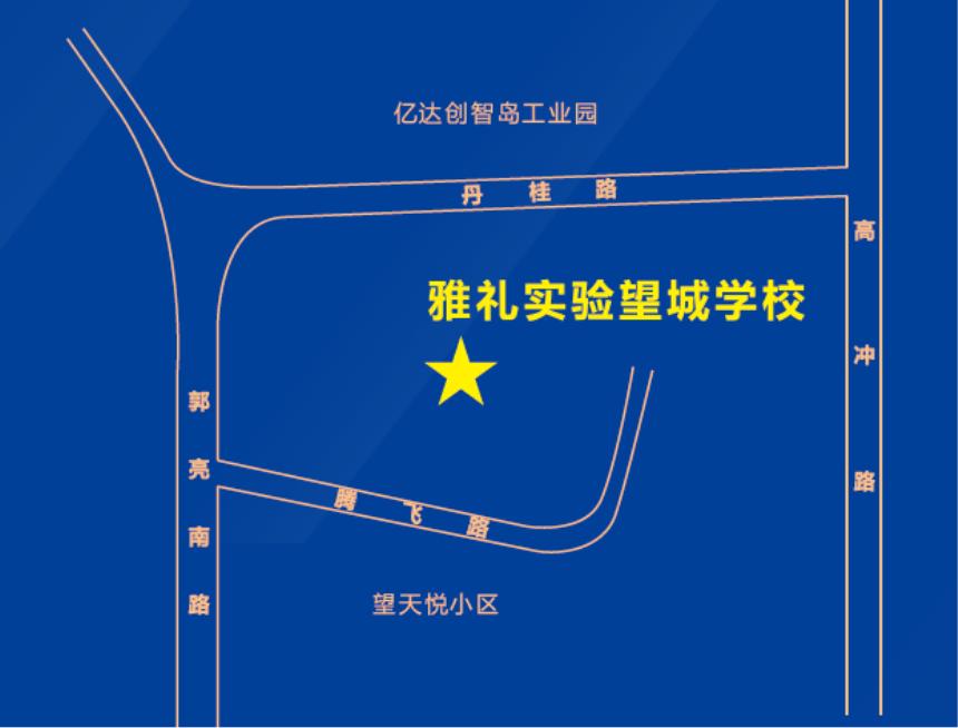 学校位于郭亮路与丹桂路交汇处东南角,毗邻望城一中。