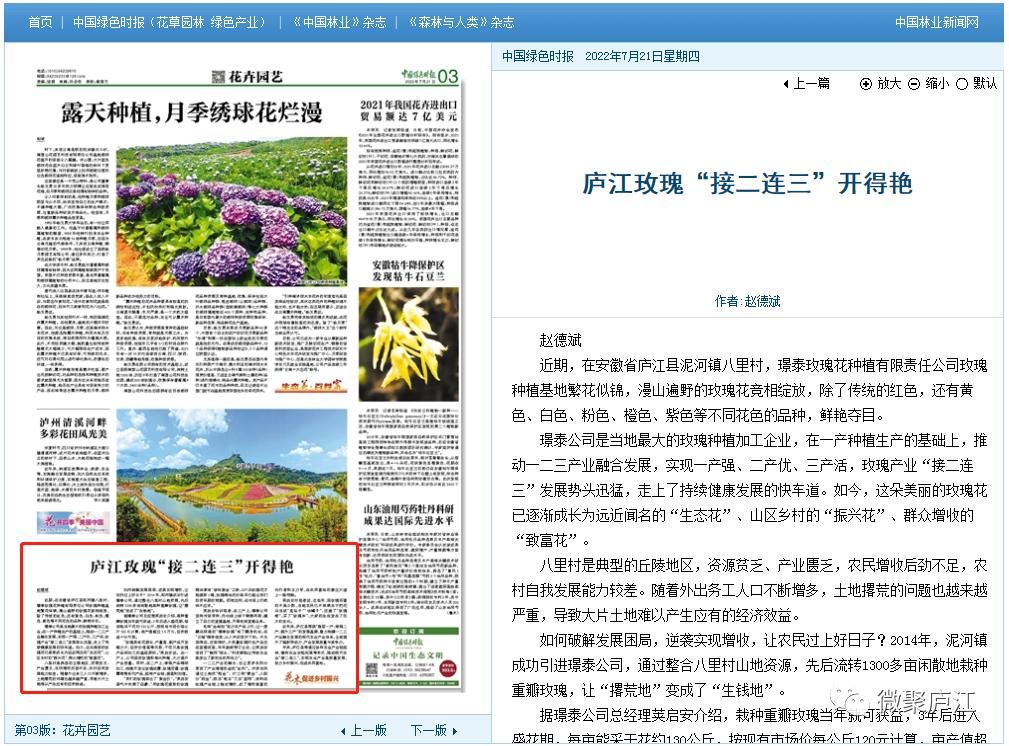璟泰公司是当地最大的玫瑰种植加工企业,在一产种植生产的基础上,推动一二三产业融合发展,实现一产强、二产优、三产活,玫瑰产业“接二连三”发展势头迅猛,走上了持续健康发展的快车道。如今,这朵美丽的玫瑰花已逐渐成长为远近闻名的“生态花”、山区乡村的“振兴花”、群众增收的“致富花”。
