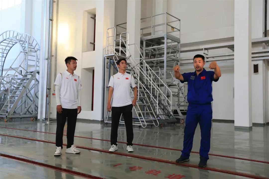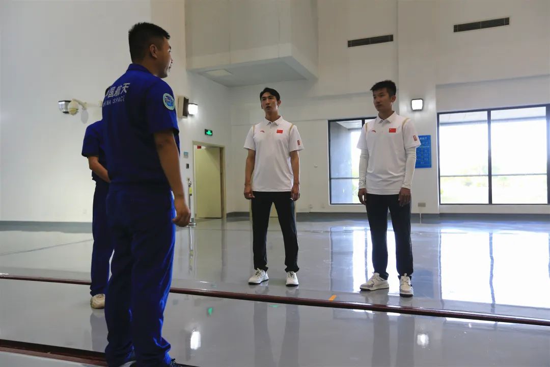 7月23日,中国男子短道速滑运动员武大靖、许宏志应邀走进文昌航天发射场,为即将出征的中国空间站问天实验舱加油鼓劲,开启一场别样的“奥运英雄”与“航天青年”的面对面交流。