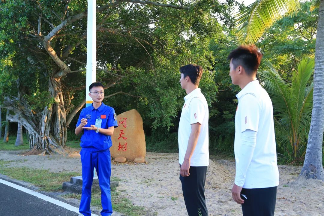 活动中,武大靖、许宏志参观了文昌航天发射场垂直总装测试厂房、火箭发射塔架,了解了发射场建设、执行任务历程,打卡了问天路上“问天树”等网红景观。当听说文昌航天发射场是中国行星探测母港、空间站建造母港和探月新母港时,他们不禁赞叹中国航天事业的飞速发展,并对后续的发射场能力拓展建设充满期待。