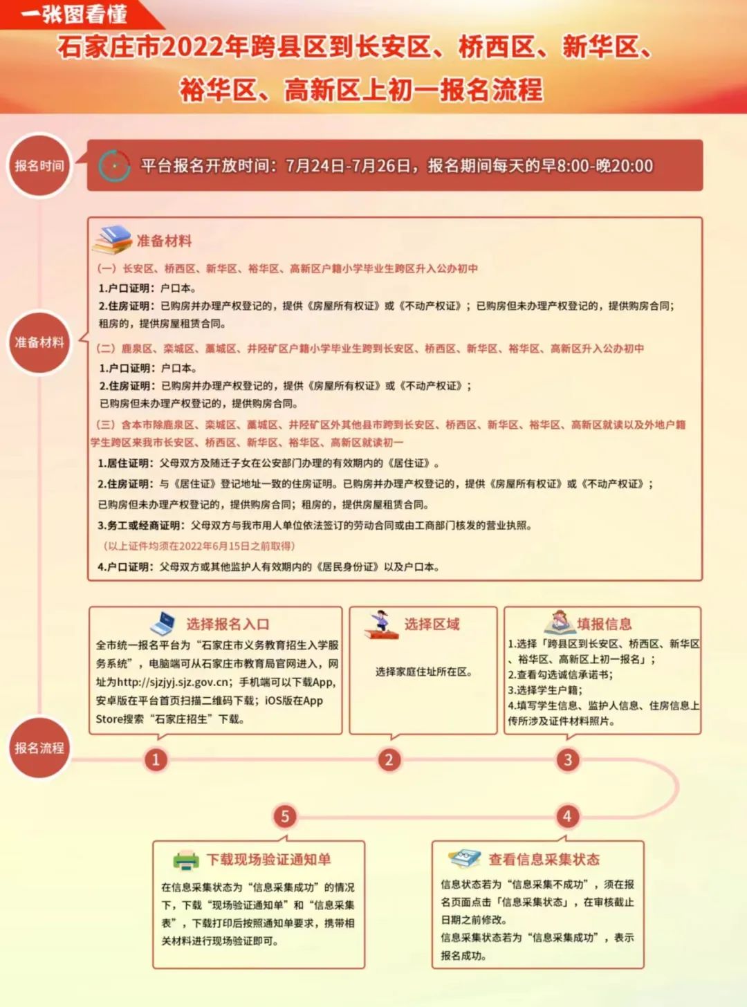 7月24日—7月26日是小升初跨区到长安区、桥西区、新华区、裕华区、高新区上初一网上报名的日子,为了使家长对报名工作更加了解,对报名流程更加清楚,石家庄市教育局发出五条温馨提醒。