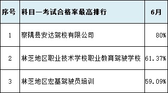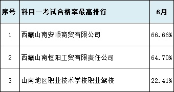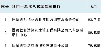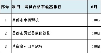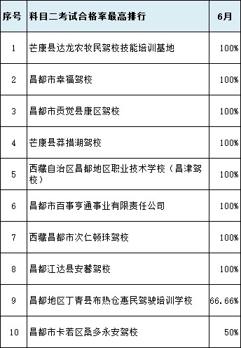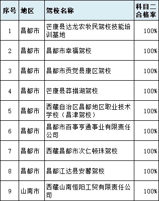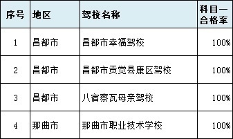 此外,昌都市幸福驾校和昌都市贡觉县康区驾校两家驾校的科目一和科目二合格率均达到100%。