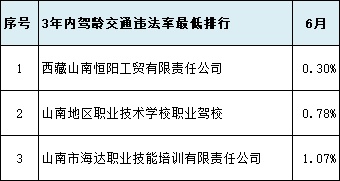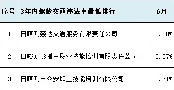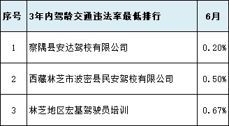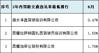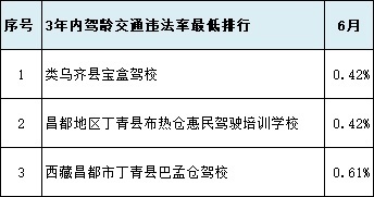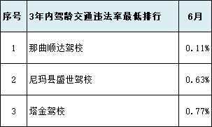 在已公布数据中,那曲市那曲顺达驾校的3年内驾龄交通违法率为西藏自治区最低,仅为0.11%。