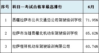 近日,西藏自治区71家驾校6月培训质量数据在交通安全综合服务管理平台公布。