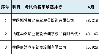 6月西藏自治区驾校培训质量公布的数据来自交通安全综合服务管理平台,由中国道路交通安全协会指导,由中国交通网进行整理。