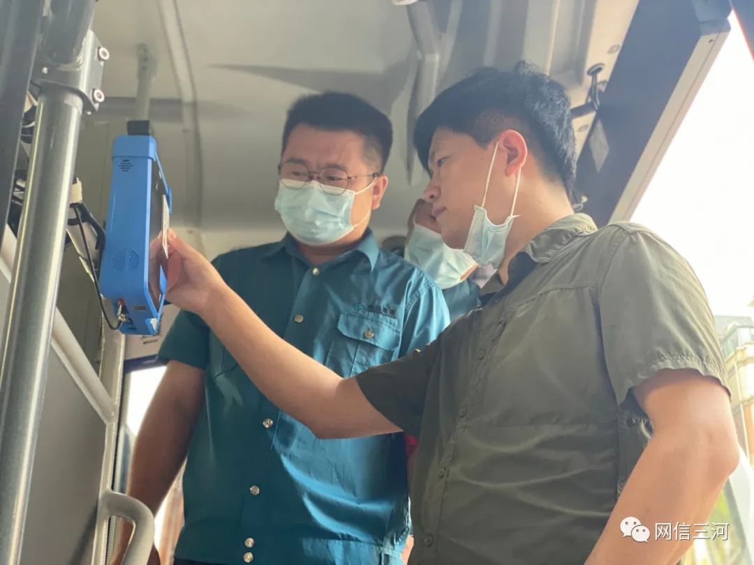 7月25日,在三河市星河园小区门口,乘客拿身份证贴近检票设备感应区,同时在摄像头前“刷脸”,完成身份核验。