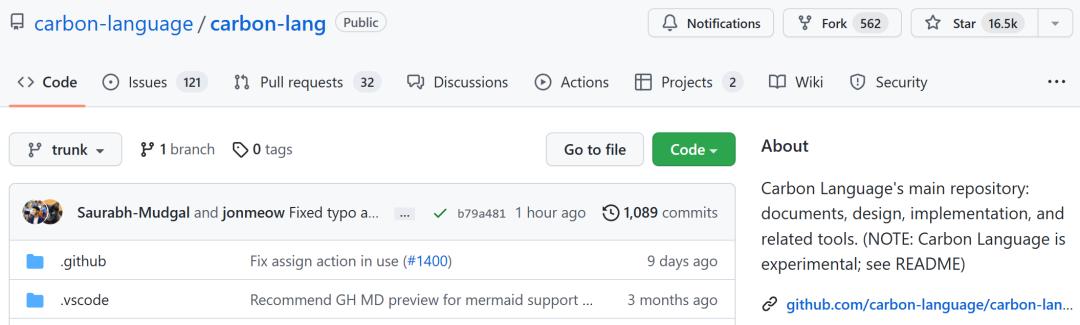 因此,Carruth希望通过更开放的社区主导环境来构建Carbon语言,并已开源。目前,该项目已在GitHub上获得了16.5k的Stars。