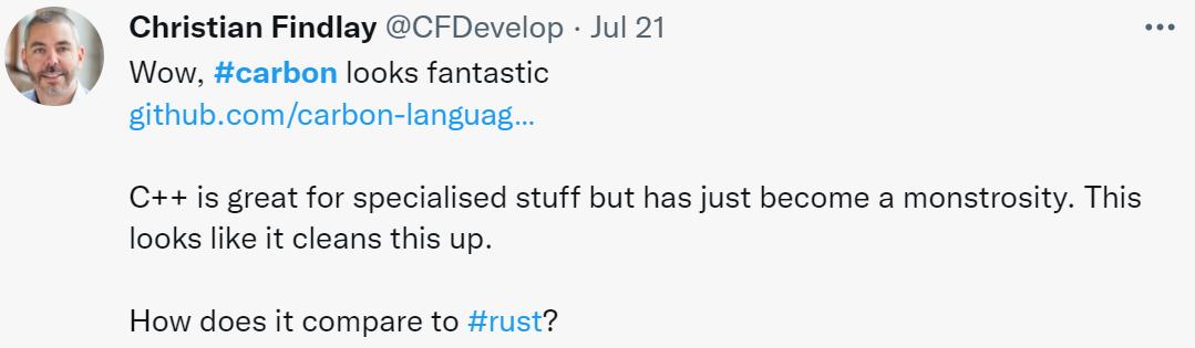 有网友表示:C++对于特定的任务是好的,但现在看起来就像一个怪物,而现在Carbon看起来就很不错。