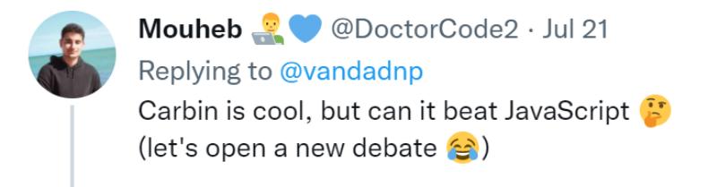还有网友想让Carbon与JavaScript进行一番比较,看看哪个更好:
