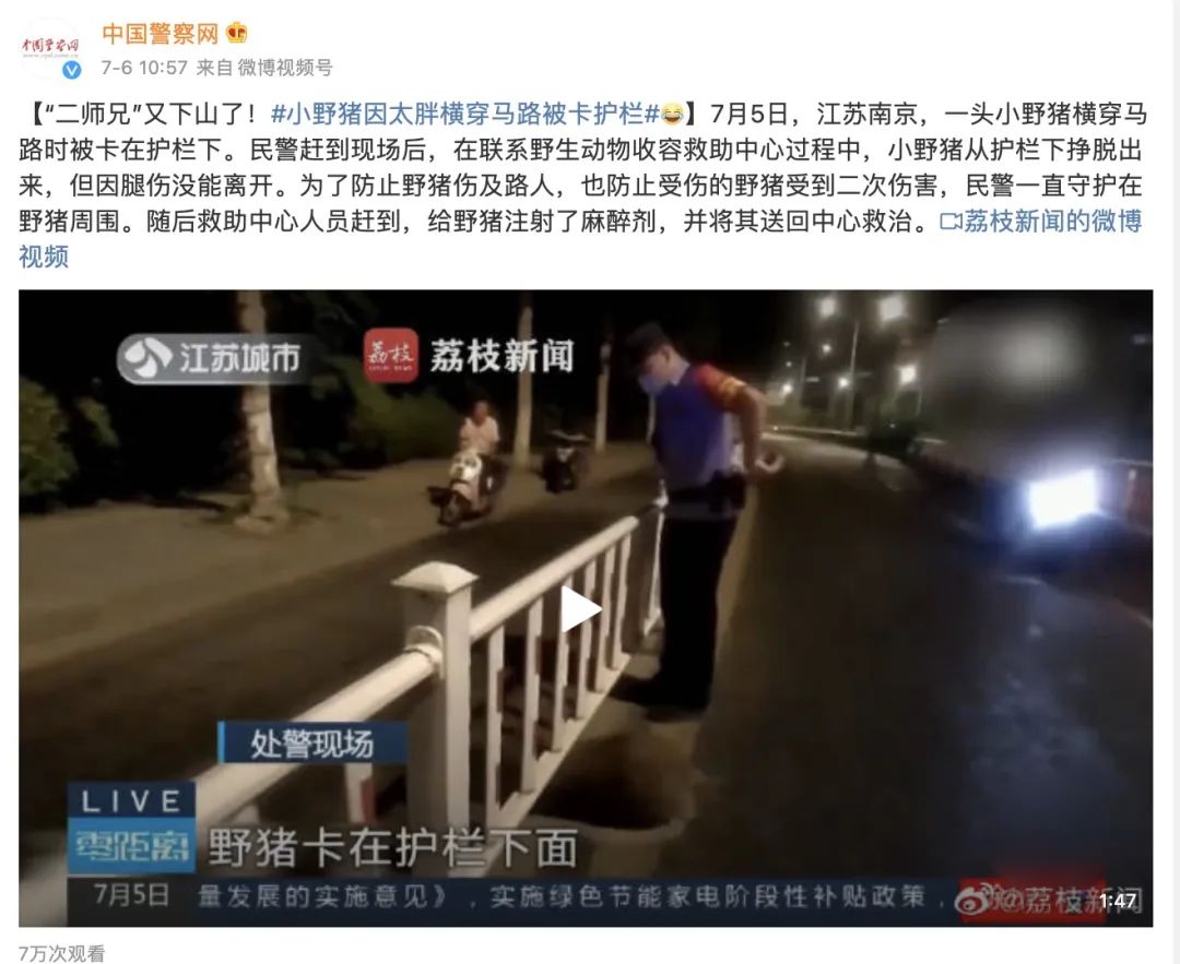 南京街头又发现野猪了。这次,是一只小野猪横穿马路,结果因为太胖被卡在护栏。从郊区的南京大学到商场的奶茶店,野猪频频出现在南京,让这座城市被戏称为“野猪之城”。不过,这只是野生动物进入城市的一个小小缩影。