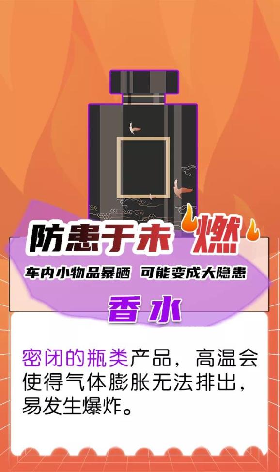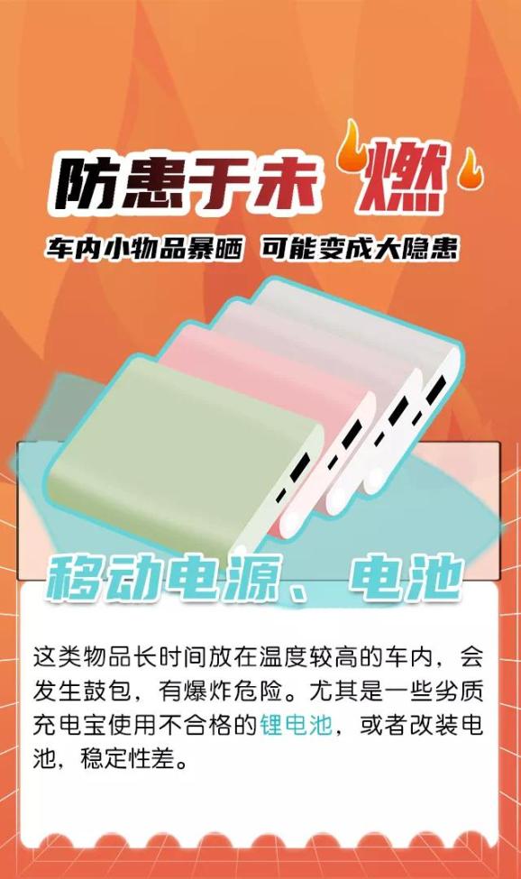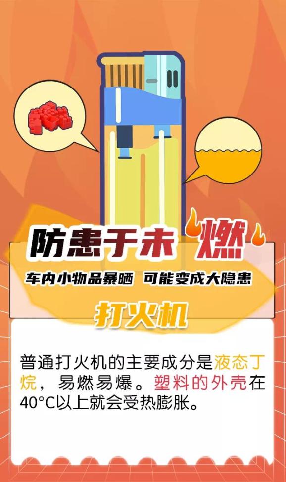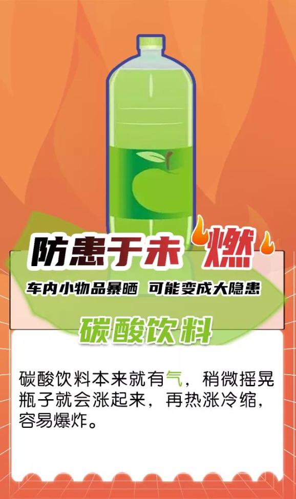 不要在车内放置易燃物品,如打火机、充电宝、碳酸饮料、车载香水等。
