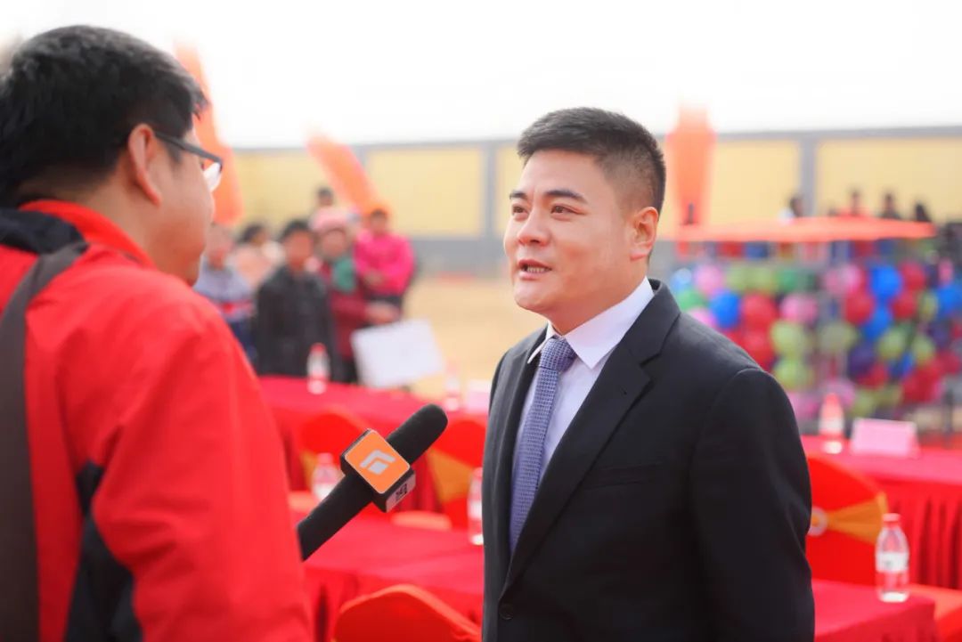 赵县南柏舍镇徐家寨天洲希望小学奠基仪式现场李志永接受媒体采访。