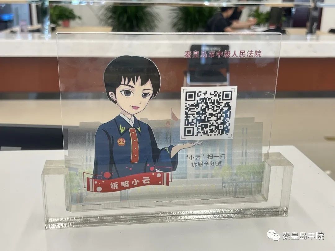 这个二维码是我们秦皇岛市中级人民法院诉讼服务中心自己研发的线上导诉平台的“门钥匙”,这个平台可与所有线上平台和官网等对接,还可查询立案指南、温馨提示、诉讼费标准、一次性告知,以及诉讼文书样式、法律规定等,几乎所有诉讼服务的内容都集约于此,真正实现了“一站式”服务。而掌管门钥匙的小仙女就是我们的线上导诉员“诉服小云”。短短2个月,“小云”就从酝酿、备孕、出生,一路成长成大姑娘了!
