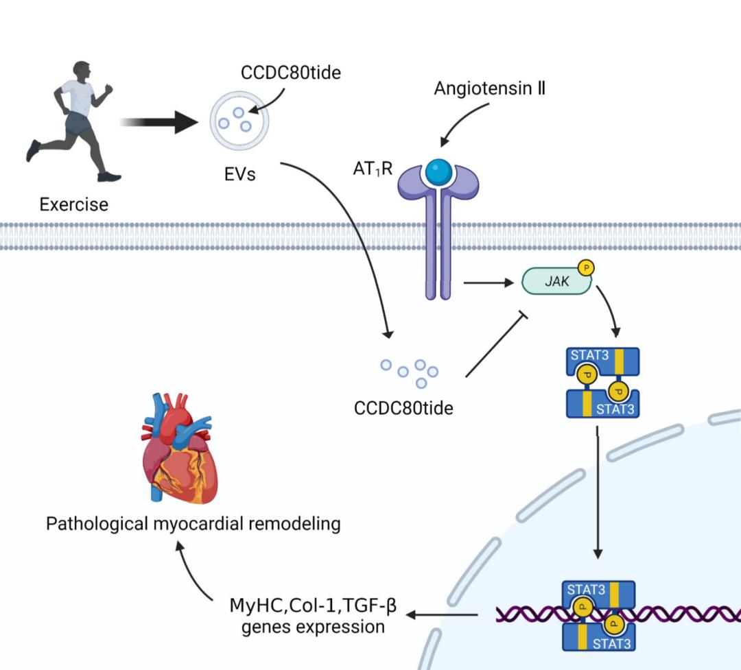 研究团队通过对骨骼肌的多组学数据进行综合分析,发现了一个由运动促发的心脏保护分子CCDC80tide。研究结果显示,CCDC80tide可降低多肽物质血管紧张素Ⅱ引起的血压升高,同时减轻心脏肥大、心脏间质和血管周围纤维化的程度,最终对血管紧张素Ⅱ诱导的病理性心脏重塑起到抑制作用。此项研究结果为心力衰竭提供了潜在的治疗靶点,同时也为高血压心脏重塑及心衰的干预措施带来了新的诊治思路与视角。